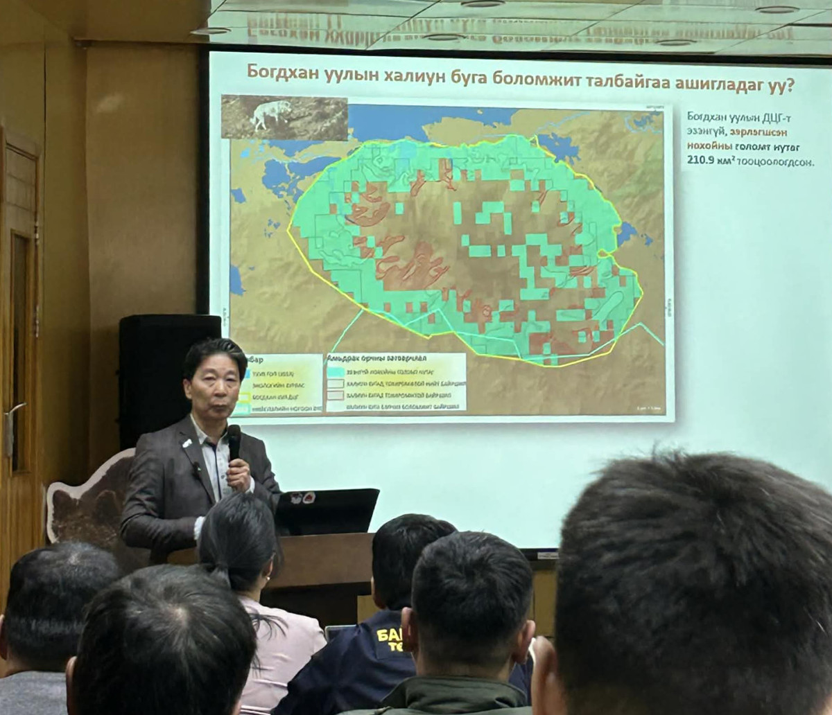 Дэлхийн зэрлэг амьтан, ургамлыг хамгаалах өдрийг тохиолдуулан (2026.03.03) “Богдхан уул ба Улаанбаатар хот орчмын ногоон бүсийн зэрлэг амьтны экологи, хамгаалал, тулгамдсан асуудал” сэдэвт хэлэлцүүлэг боллоо. Энэ үеэр Богд уул орчмын бугын тоо толгой нэмэгдэж буйтай холбоотойгоор үүсэж болзошгүй эрсдэлийн талаар ШУА-ийн Биологийн хүрээлэнгийн Хөхтний лабораторийн эрдэм шинжилгээний ажилтан Д.Энхбилэг илтгэл тавьсан юм.
