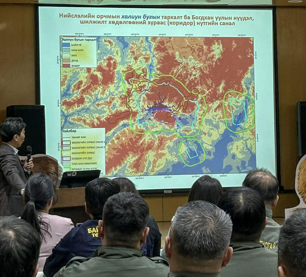 Богдхан уулын маань хувьд Хэнтийн нурууны баруун өмнөд захын хязгаар. Гэвч суурин газар, дэд бүтцийн хөгжлөөс болж олон жилийн турш таслагдсаар, үндсэн нуруунаасаа тусгаарлагдсан орчин болоод байна. Үүнээс үүдэн зэрлэг амьтдын нүүдэл, шилжилт хөдөлгөөн хязгаарлагдсан. Энэ асуудлыг шийдвэрлэх гарц нь "экологийн коридор" байгуулах. Сүүлийн жилүүдэд энэ талаар нийслэлийн захиргаа болон байгаль орчны салбарын мэргэжилтнүүд эрчимтэй ярьж эхэлсэн.