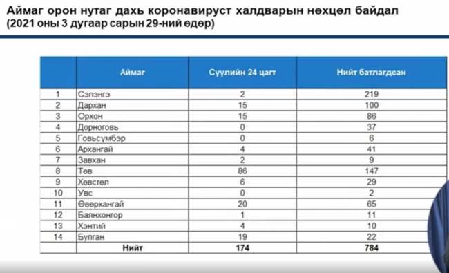 Улаанбаатар хотоос гадна дараах 14 аймагт коронавирусийн халдвар бүртгэгджээ.