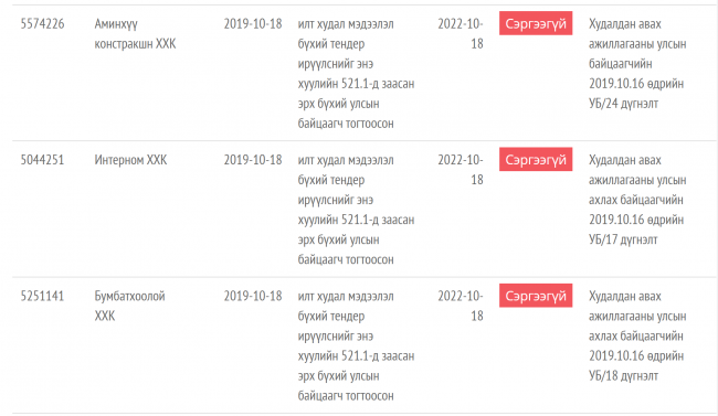 Эх сурвалж: Төрийн худалдан авах ажиллагааны цахим систем