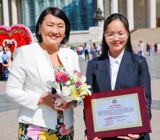 Тухайлбал, АНУ-ын Нью-Йорк хотноо зохион байгуулагдсан, 200 гаруй орны хүүхдүүд оролцсон “Кришендо” өсвөрийн хөгжимчдийн олон улсын уралдаан, Ази тивийн аварга шалгаруулах шатрын тэмцээн Ливан улсын Бэйрут хотод болсон Жүдо бөхийн өсвөр, залуучуудын Ази номхон далайн орнуудын ази тивийн аварга шалгаруулах тэмцээн зэрэгт Монгол Улсаа төлөөлөн амжилттай оролцон шагналт байр эзэлсэн 30 хүүхдэд шагнал гардуулав.