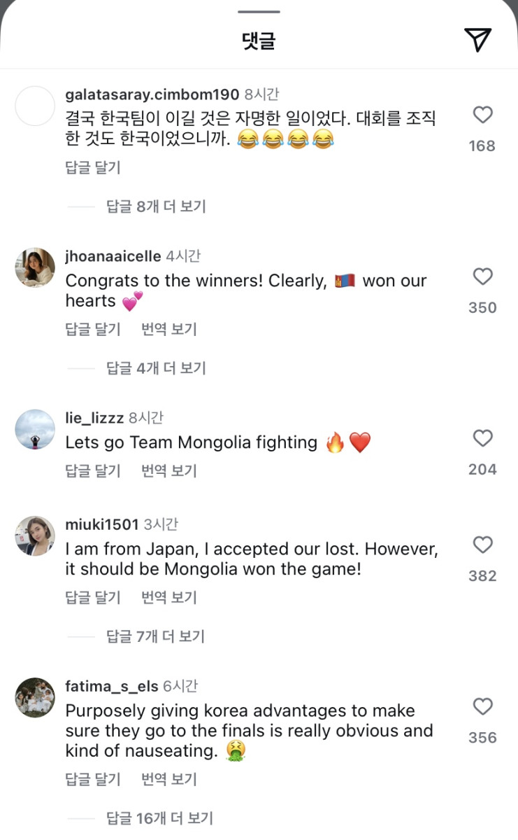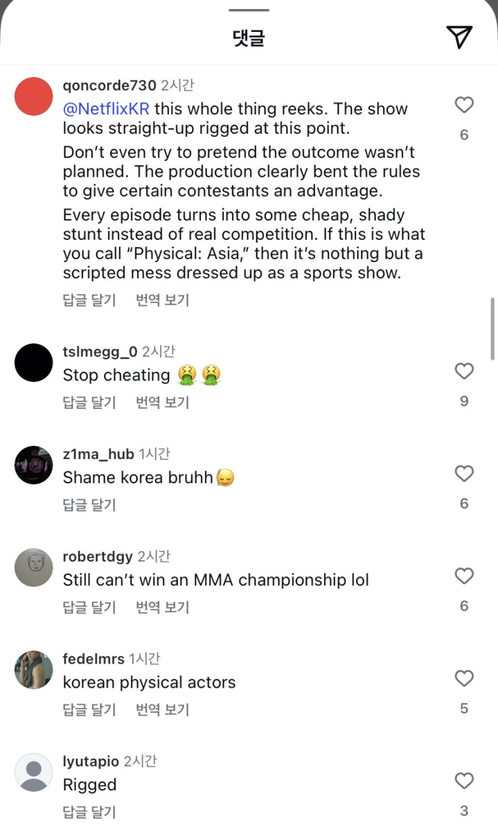 Мөн шоуны төгсгөл олон улсын үзэгчдээс хүчтэй шүүмжлэл дагуулж “Тэмцээний дүрмийг Солонгосын тал өөрсдөдөө давуу байхаар зохион байгуулсан” гэх сэтгэгдэл цахим орчинд тасралтгүй хөвөрсөөр.