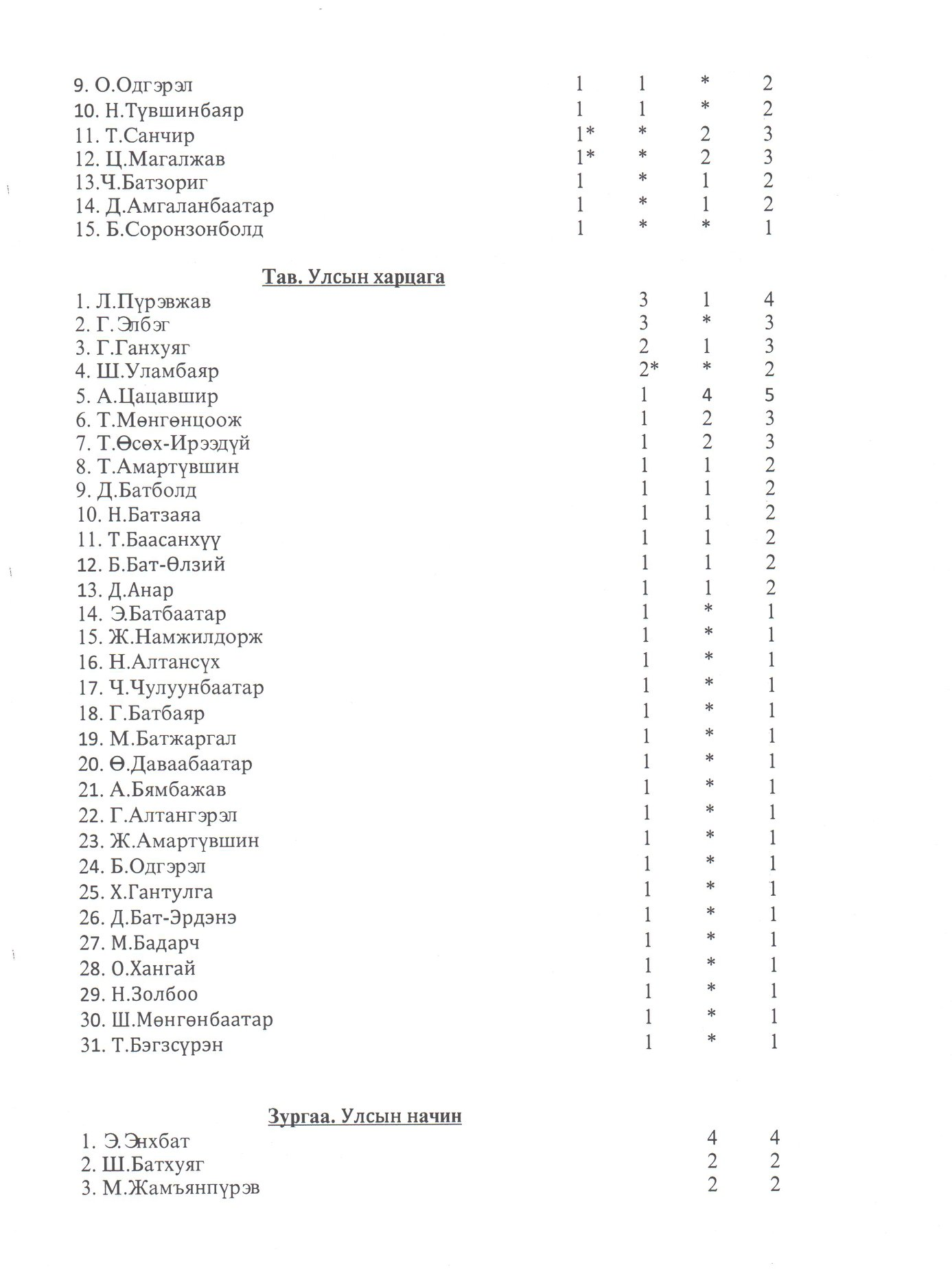 Улсын цолтой бөхчүүдийг эрэмбэлсэн жагсаалтыг хүргэж байна.
